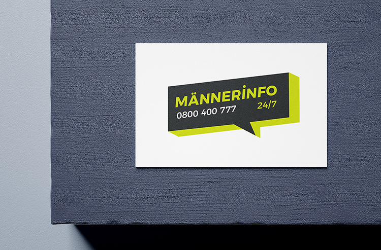 Im Rahmen der Meisterklasse hatten wir als Studierende die Aufgabe, für die Telefonische Krisenberatung *Männerinfo* ein Logo sowie einen Infofolder zu gestalten. Besonders wichtig war dabei die deutliche Sichtbarkeit der Telefonnummer und die Betonung der uneingeschränkte Erreichbarkeit, insbesondere über die Chatfunktion.